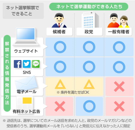 これにより、従来は選挙期間中は行えなかったインターネットを通じた選挙活動が可能になりました。